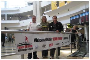 Spirits were high as The Team completed the first day’s hike in 7 hours. Tuesday’s hike took them to an altitude of 3500m. This gave our survivors the opportunity to experience some altitude while not being exposed for too long, allowing them time to acclimatise. At this stage of the climb Robby will caution the rest of The Team to take it slow. Because of the quick onset of altitude sickness, climbers often feel good and push on only to be caught in the latter stages of the climb.
