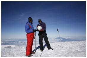 Good news all round. The entire team reached the summit at 07h30, and in true South African soccer spirit style, proceeded to dance the diski, blow the vuvuzela and kick the soccer ball (Kiliball). So it took them an hour to find the soccer ball, but all’s well that ends well.